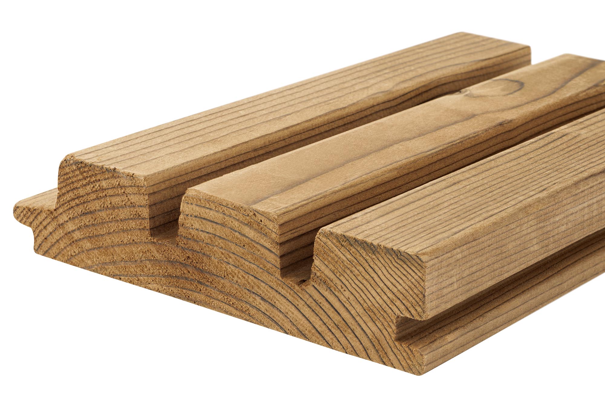 Luna Triple (voorheen Triple Shadow) is gemaakt van gemodificeerd Scandinavisch Vuren (duurzaamheidsklasse 2). Dit model heeft twee diepe groeven om een modern oppervlak en lattenlook te creëren met eenvoudige montage. De Luna Triple is bij verticale montage geschikt voor gevels en interieurs, kan onbehandeld gemonteerd worden en krijgt een mooie zilveren kleur aan de buitenkant als het onbehandeld blijft.